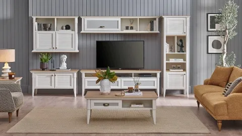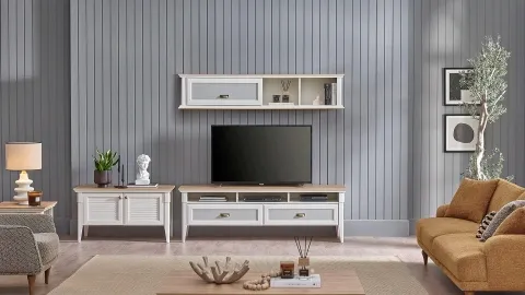 Toscana tv ünitesi üst modül kapakli est un module haut pensé pour compléter votre composition TV Toscana. Son design s’intègre facilement dans un salon moderne et vous aide à organiser l’espace (rangement, déco, mise en valeur de la TV).