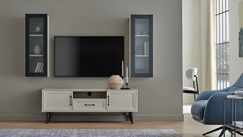 Trento – module d’étagère supérieure vitrine est un module latéral pensé pour compléter votre composition TV Trento. Son design s’intègre facilement dans un salon moderne et vous aide à organiser l’espace (rangement, déco, mise en valeur de la TV).